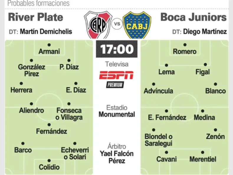 Probables formaciones de River-Boca