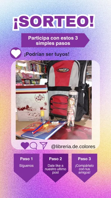 Para poder participar es muy sencillo, apenas con tres simples pasos siguiendo la página de la librería @ librería.de.colores con estos tres pasos: Paso 1: síguenos. Paso 2: dale like a nuestro último post y Paso:3: compártelo con tus amigos y listos y ya estas participando y lo podes hacer hasta este viernes.