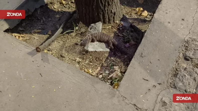 Este martes por la tarde una sanjuanina iba caminado por calle Libertador y Circunvalación con su bebé, a quien traía del jardín maternal, cuando ambos se aterraron por lo que vieron. Es que se encontraron con un reptil de gran tamaño suelto en la vereda.