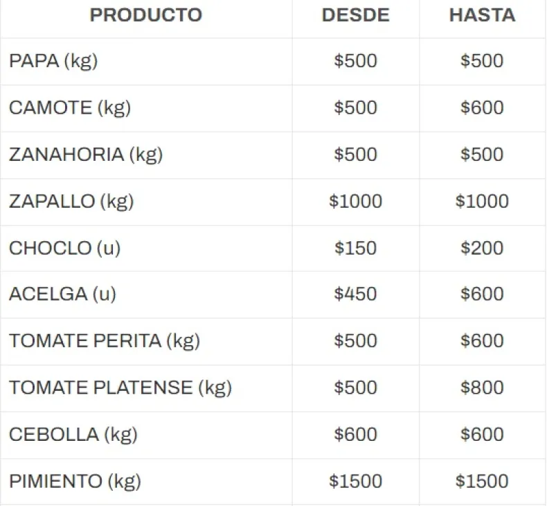 Capital publica los precios de referencia de frutas y verduras en la feria municipal
