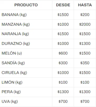 La Municipalidad de la Ciudad de San Juan informa los precios de referencia de los productos que los puesteros y comerciantes ponen a disposición en la Feria y Mercado de Abasto. Ubicada en calle 25 de Mayo 842-900 (este) ofrece los siguientes precios en verduras, frutas y carne: