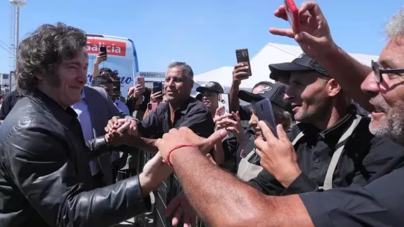 Milei llegó en helicóptero a San Nicolás minutos después de las 11:30 para participar de la muestra, en su primera aparición pública tras la apertura del período ordinario de sesiones del Congreso que realizó el viernes pasado. El presidente estuvo acompañado por el ministro del Interior, Guillermo Francos, y por Karina Milei, secretaria general de la Presidencia, además de Espert.