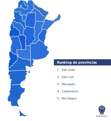 Los datos aportados por la consultora Demokratia indican que le siguen San Luis y Neuquén.