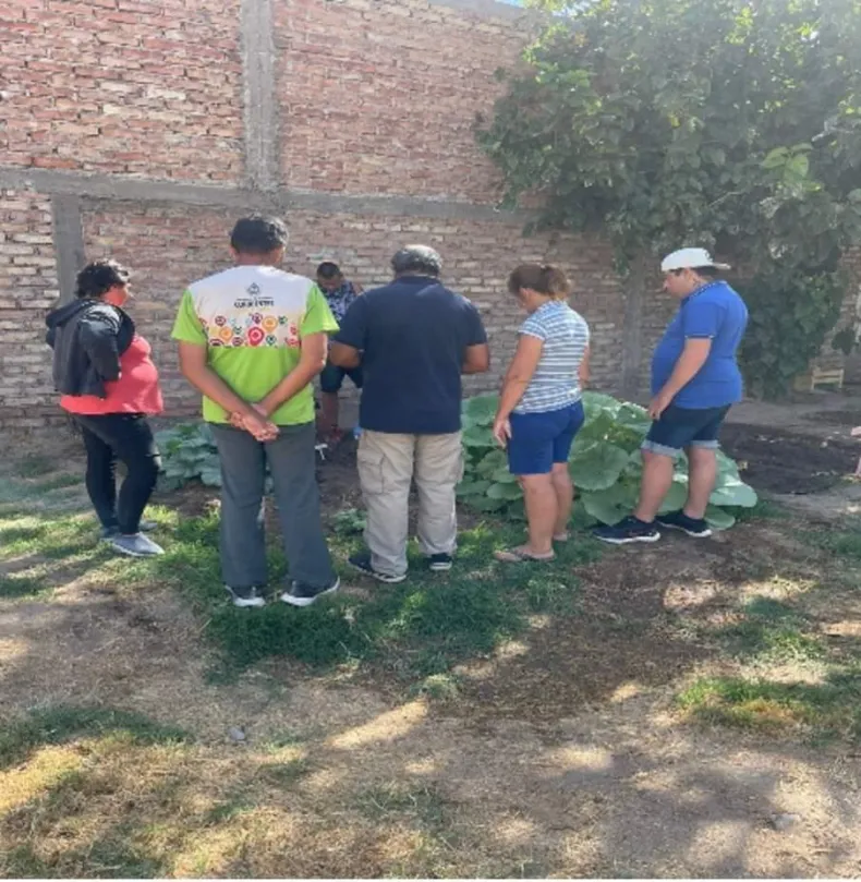 En esta oportunidad, el equipo "Centro de Día", conformado por las licenciadas Carina Claro, Romina Bustelo y el técnico de la AER Caucete, Gustavo Orozco, organizaron un espacio de capacitación a un grupo de pacientes en la preparación de terreno, siembra, riego y demás cuidados de la huerta.