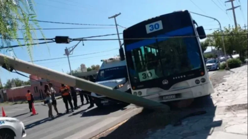 Un gran susto se llevaron los automovilistas que circulaban por la zona cuando un colectivo de línea 30, perteneciente a la empresa Ato de Sierra, chocó contra un poste, cuando el conductor sufrió una descompostura cuando circulaba por calle Benavides y Charcas en el departamento Chimbas.