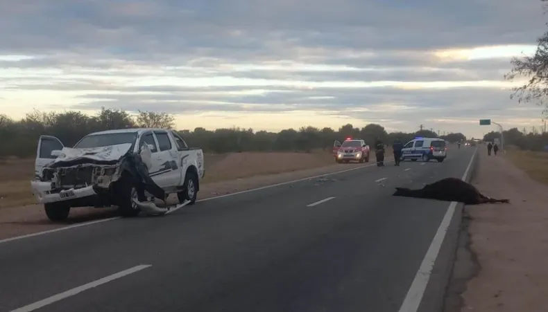 El conductor de una camioneta chocó con un equino en la ruta y salio ileso del accidente.
