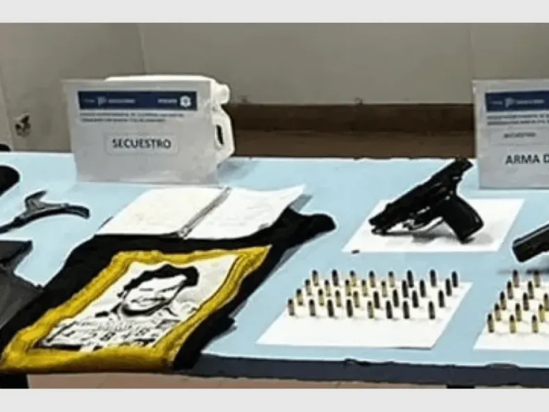 Además, los criminales poseían una pistola Llama nueve milímetros, 51 municiones del mencionado calibre, un chaleco antibalas robado el 29 de octubre de 2020, una granada de humo, una estrella ninja de tres puntas, un cuaderno con varias anotaciones, 6.180 pesos, dos aparatos de telefonía celular y una motocicleta Yamaha Fazer violeta de 250cc y carente de dominio.