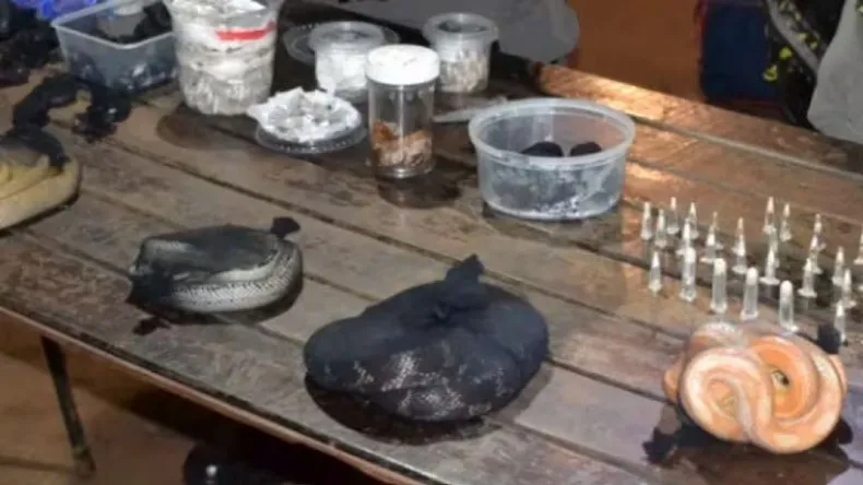 Un hombre que viajaba en micro de larga distancia a Buenos Aires fue detenido luego que constataran que llevaba 90 serpientes, 236 arañas y un ciempiés ocultos en dos valijas.