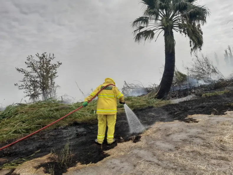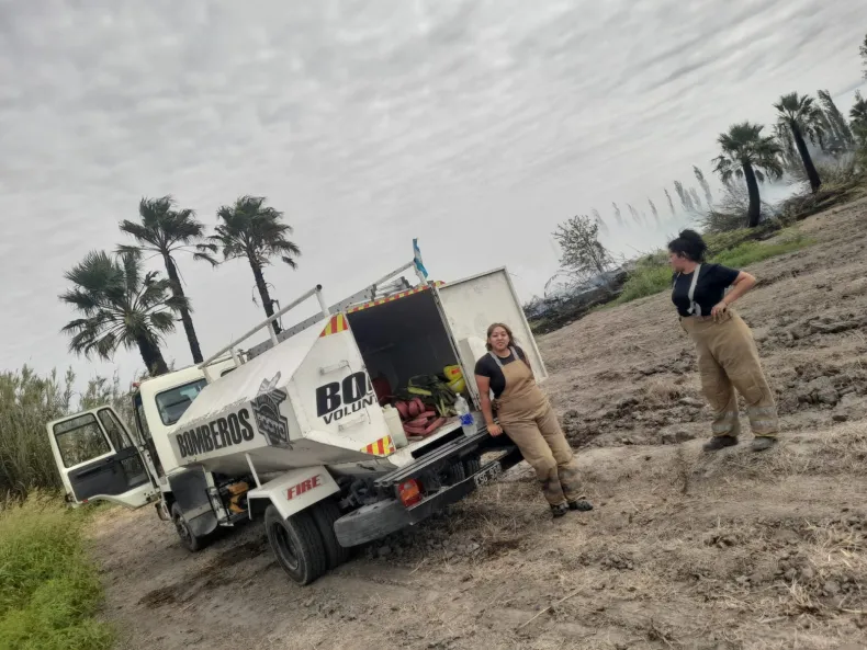 Tras casi tres horas de intenso trabajo, personal de los Bomberos Voluntarios de Pocito trabajaron sobre un incendio forestal que amenazaba con propagarse hacia el sector de las vacas vecinas.