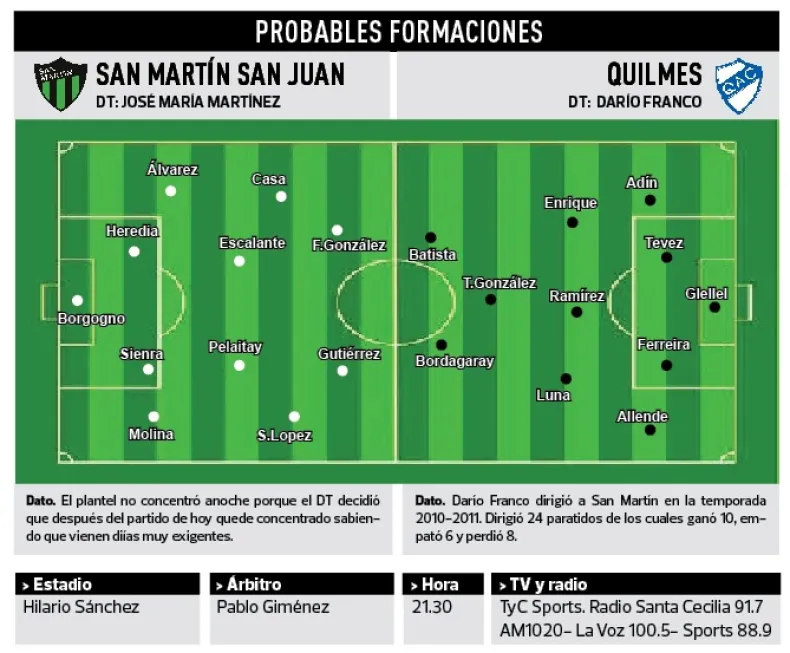 San Martín recibe en Concepción a Quilmes en el marco de la Séptima Fecha de la zona A. El partido comenzará a las 21.30 y en el Verdinegro no habrá cambios respecto del equipo que viene de empatar con San Miguel.