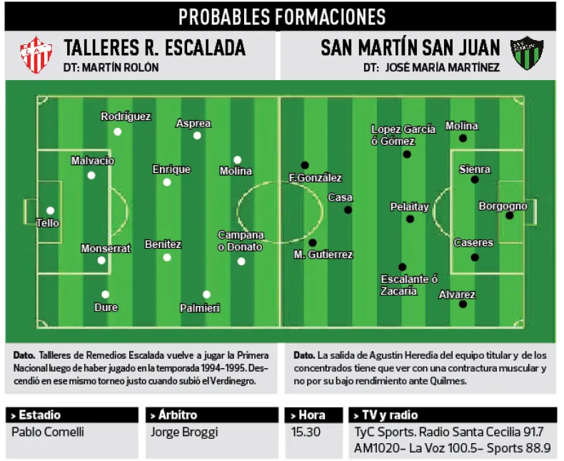 El equipo es dirigido por Martín Rolón y dentro de los refuerzos que llegaron para esta temporada se encuentra Matías Donato, quien estuvo en San Martín en la temporada pasada. Precisamente el delantero es una de las dudas que maneja el entrenador para el juego de esta tarde.
