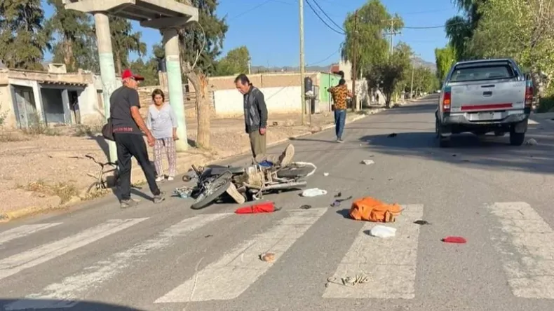 La camioneta pertenecería a la Municipalidad de Jáchal. El hombre de la moto termino en el hospital zonal tras semejante encontronazo con el rodado.