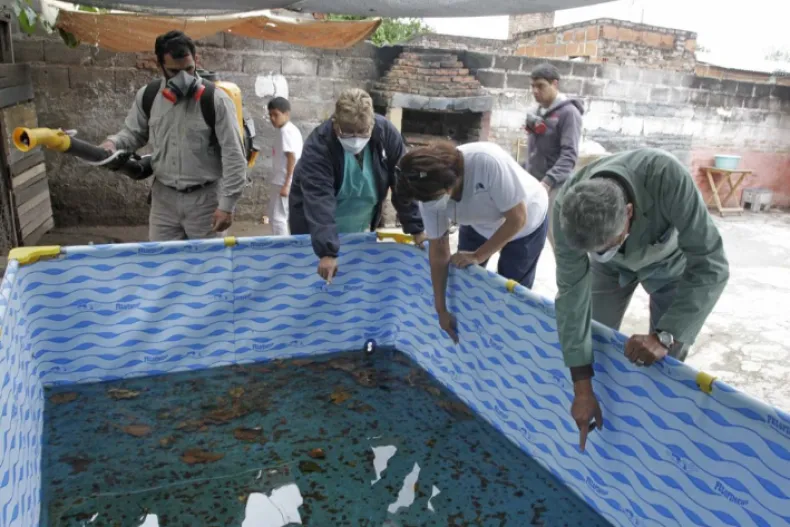 Esta enfermedad viral es transmitida por la picadura del mosquito Aedes aegypti, conocido como el mosquito "hogareño" por sus hábitos domiciliarios. Los síntomas de dengue son fiebre elevada, dolor de cabeza intenso, dolor detrás de los ojos, dolores musculares y en las articulaciones, náuseas, vómitos, agrandamiento de ganglios y sarpullido.