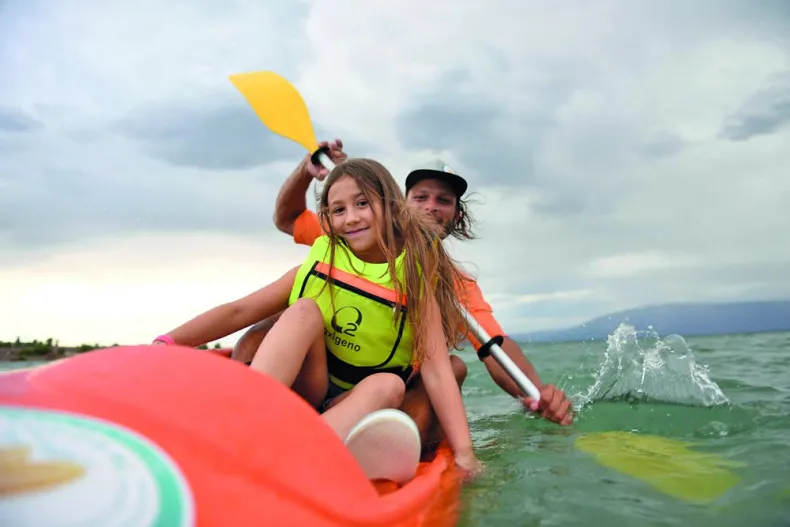 Descubrí y recorre las Islas griegas realizando Kayak en el Dique Cuesta del Viento que se vislumbra como un espejo de agua verde esmeralda antes que comience el viento del medio día. También, en el Punta Negra, se puede optar de los imperdibles paseos en embarcación, en el Catamarán.