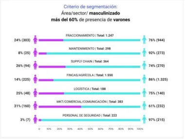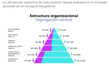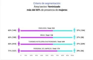 Una de las principales problemáticas identificadas es la segregación horizontal y vertical en los roles laborales. Los datos muestran que ciertas áreas, como fraccionamiento, mantenimiento, supply chain y seguridad, están predominantemente masculinizadas, mientras que otras, como enología, recursos humanos y turismo, tienden a tener una mayor participación femenina. Esta segregación no solo afecta las responsabilidades laborales, sino también tiene un impacto significativo en las remuneraciones, con salarios inferiores en sectores altamente feminizados.