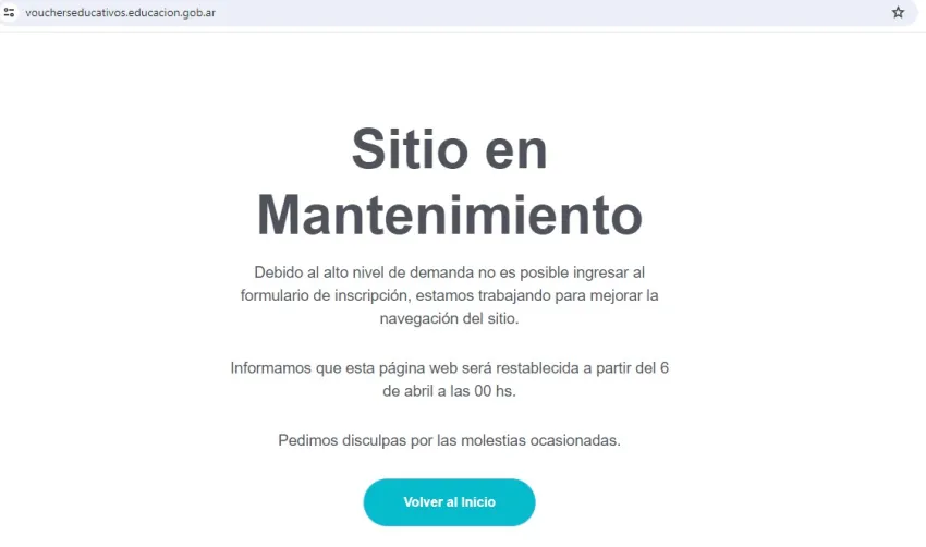 La página web para la inscripción al programa de vouchers educativos colapsó por la alta demanda. Las inscripciones se reanudarán el 6 de abril a las 00.