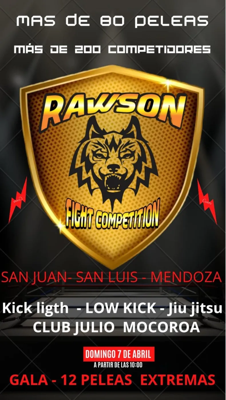 El próximo domingo 7 de abril, el Club Julio Mocoroa se convertirá en el escenario principal para los amantes de las artes marciales con la celebración del "Rawson Fight Competition". Organizado por Destrezas Ariel y con la participación de deportistas provenientes de diversas provincias, este evento promete una jornada llena de emoción y acción a partir de las 10 de la mañana.