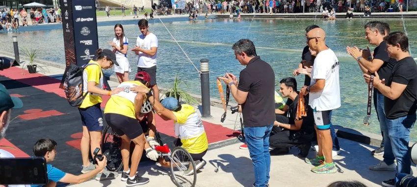 El gobernador compartió esta mañana los momentos en que los primeros competidores del Ironman 70.3 arribaron al Parque del Bicentenario dónde estaba el arco de llegada.
