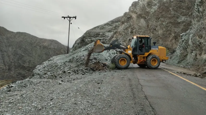 El personal de la división Conservación de la zona norte de Vialidad Nacional, distrito San Juan, realizó las tareas de despeje en las zonas afectadas por el derrumbe en la calzada.