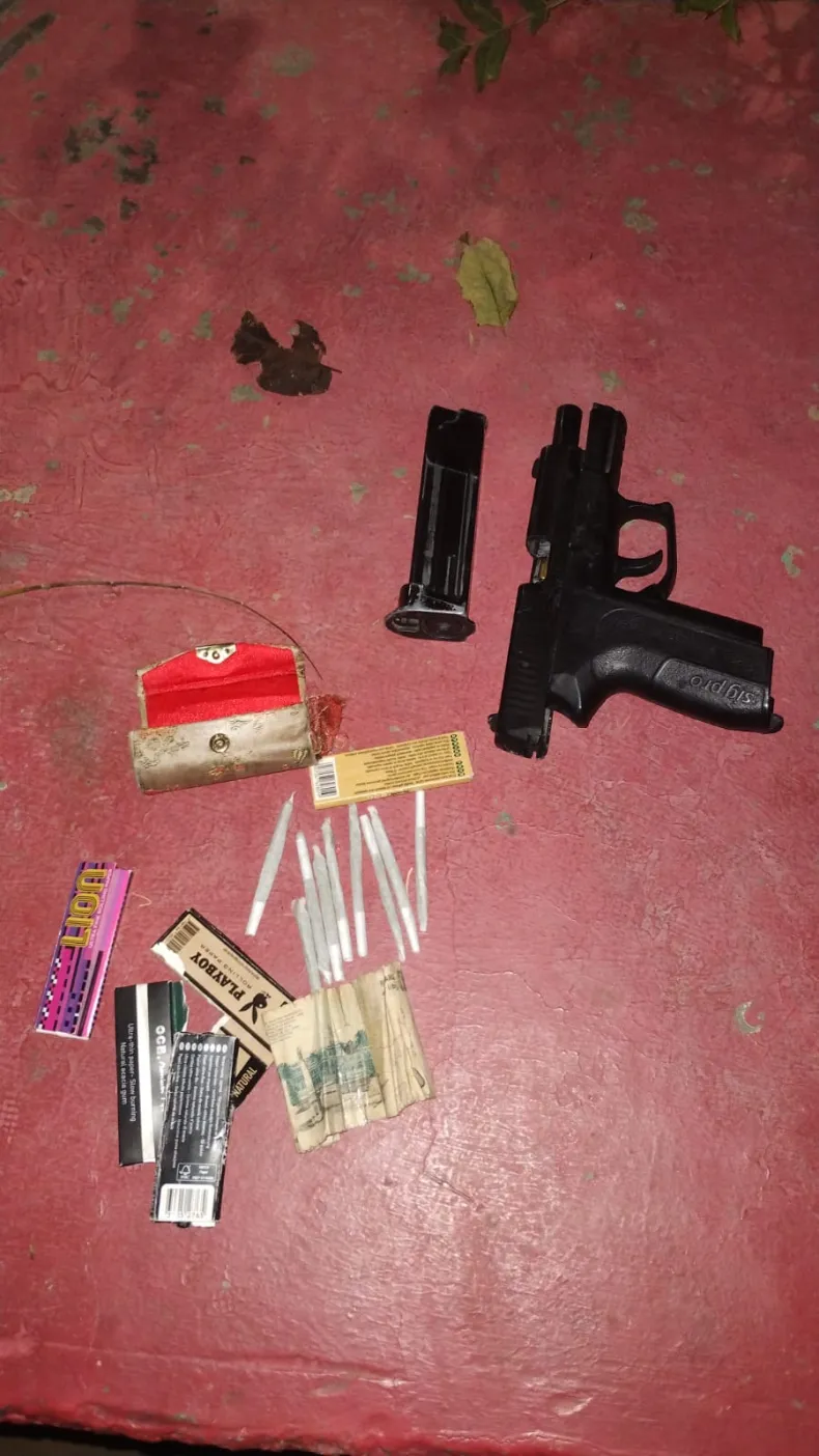 Cuando quisieron entrevistar a uno de ellos, este se negó a dar sus datos y trató de irs edel lugar. En eso, arrojó un arma de fuego tipo pistola, de color negra, la cual cayó al suelo. Ante eso, los uniformados la secuestraron y, a su vez, dialogaron con otro de los delincuentes.