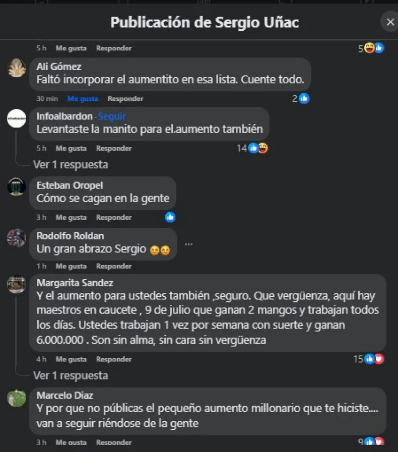 Tras esta publicación, varios usuarios de Facebook le reprocharon al senador obviar en el posteo el tema del aumento de sueldo: