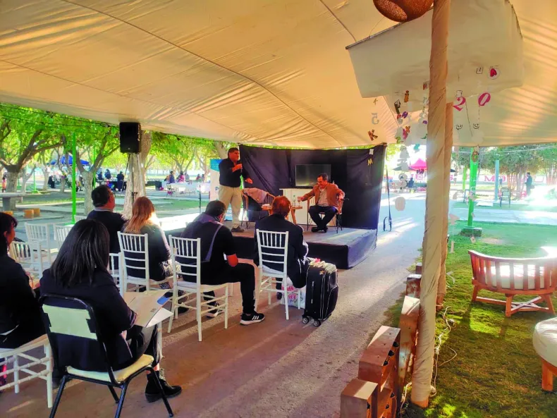 También en el lugar, está un espacio para la reflexión y la presentación de distintos libros de autores sanjuaninos. En ese contexto, es que este martes, Victor Garcia, periodista de Zonda Diario y José Miguel Páez, locutor nacional, hicieron una presentación de sus producciones literarias. Ambos escritores, con producciones propias de la prosa, hablaron de sus novelas y libros de cuentos. También Paéz resaltó su nota poética con la lectura de alguna de sus producciones.