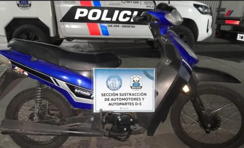 El pasado 29 de abril, en el departamento Rawson, los investigadores secuestraron una moto, marca Brava, modelo Nevada 110, que registraba pedido de secuestro por el delito de hurto calificado.