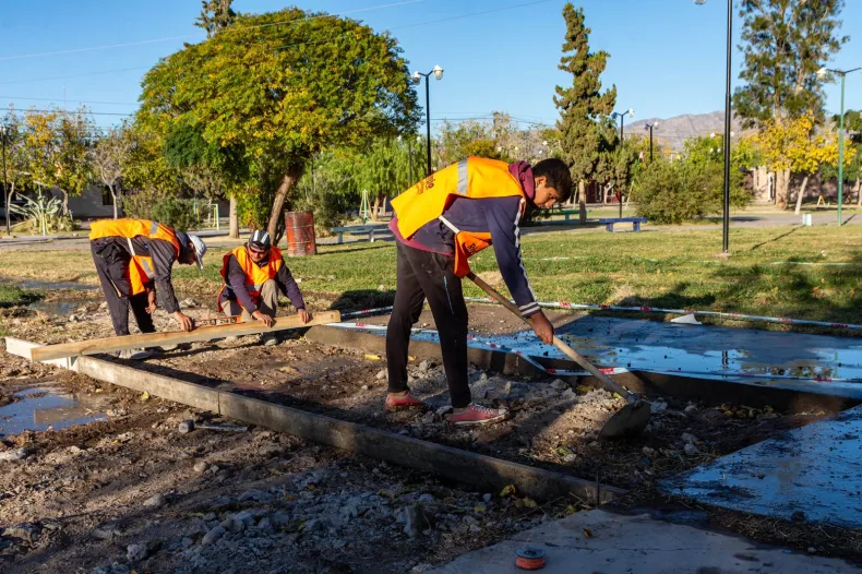 El plan integral de obras barriales de Rivadavia avanza a paso firme y esta semana se comenzó con la última de las cinco plazas departamentales proyectadas para el primer semestre.