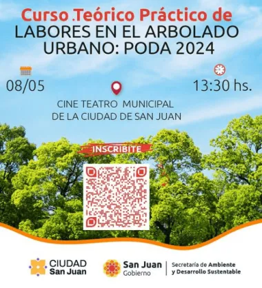 Posteriormente, se realizará una charla con demostración práctica de poda en los alrededores del Cine Teatro Municipal, a cargo del equipo de trabajo de la Dirección de Ambiente de la Municipalidad de la Ciudad de San Juan, dirigida por el Ing. Lisandro Cevinelli y por el Ing. Lucio Gómez.