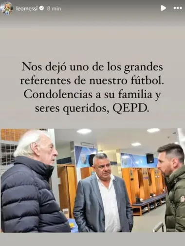 En tanto, Lionel Scaloni escribió en su cuenta de Instagram: "Se nos fue un Maestro del fútbol, gracias por esas charlas entrañables en las que nos dejaste huella, hasta siempre flaco querido". Y Lionel Messi se sumó con una stories en la misma red social que decía: "Nos dejó uno de los grandes referentes de nuestro fútbol. Condolencias a su familia y seres queridos, QEPD".