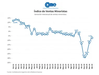 Así surge del Índice de Ventas Minoristas Pymes de la Confederación Argentina de la Mediana Empresa (CAME), elaborado con base en un relevamiento mensual entre 1.276 comercios minoristas del país, realizado del 2 y 3 de mayo.