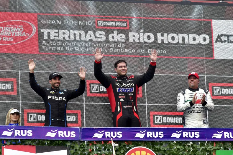 En el podio final estuvieron Valentín Aguirre con Chevrolet, el mendocino Julián Santero con Ford y tercero Gastón Mazzacane con Chevrolet.