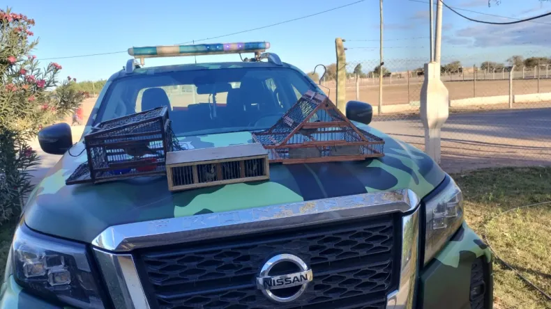 Además, les secuestraron tramperos-jaulas y una jaula de transporte, que contenían varios pájaros de la especie benteveo.