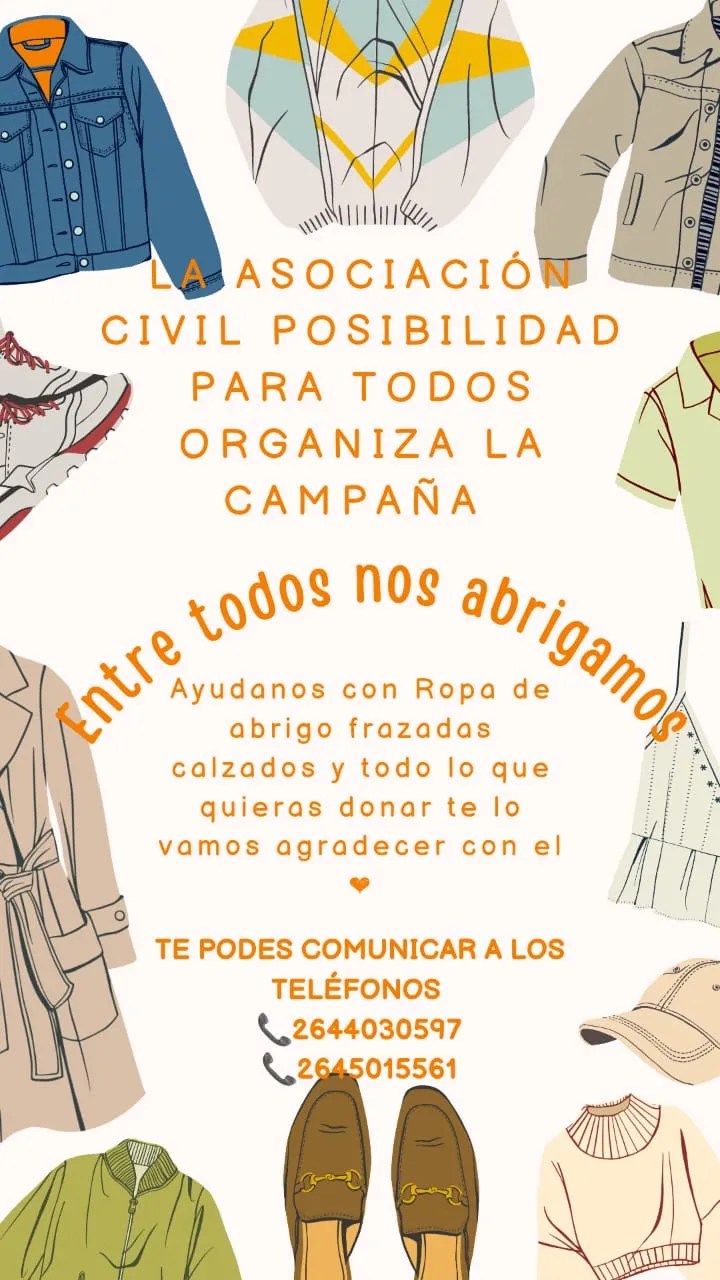 Para sumarse a la actividad solidaria con donaciones, pueden hacer entrega de vestimenta, abrigos, calzados o alimentos. Deben coordinar para concretarlo a través de los siguientes contactos: 2644030597 / 2645015561.