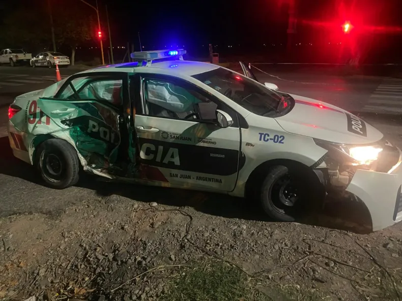 El choque se dio entre un patrullero de la Policía de San Juan, marca Toyota Corolla, que era conducido por el cabo Juan Ezequiel Pastén.