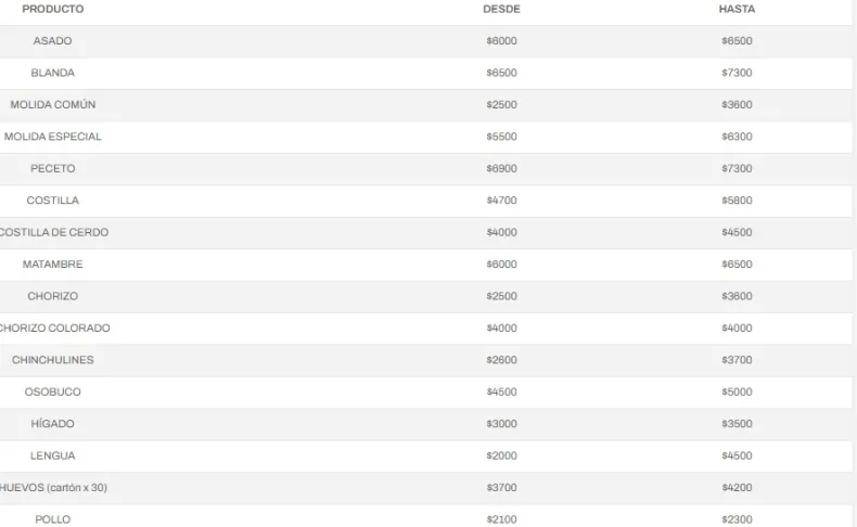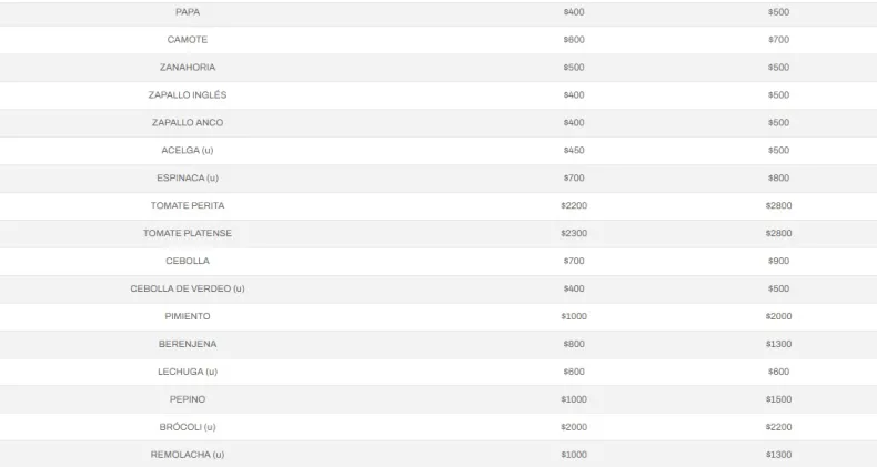 Estos son los precios de referencia de frutas, verduras, carne y embutidos que se pone a disposición de los compradores.