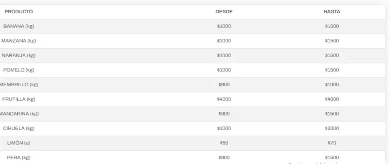 La Municipalidad de la Ciudad de San Juan informa los precios de referencia de los productos que puesteros y comerciantes ponen a disposición en la Feria y Mercado de Abasto, ubicada en calle 25 de Mayo 842-900 (este).