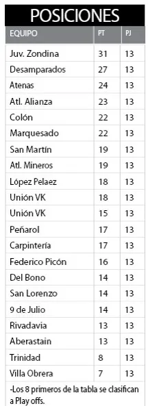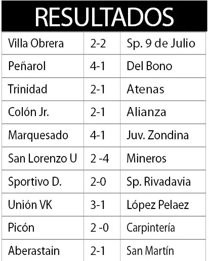 Desamparados sigue prendido y ganó 2-0 a Rivadavia, con goles de Juan Villalobos y Daniel Castro, lo que lo acerca a la Juve. Picón venció a Carpintería 2-0 y Unión derrotó 3-1 a Lopez Peláez.