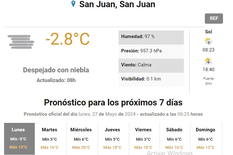 Frío extremo: San Juan amanece con 3° bajo cero y humedad del 97%