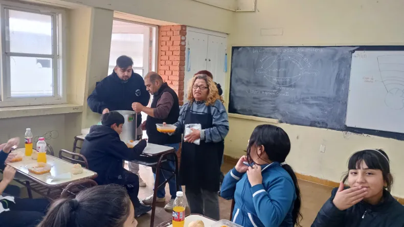 Prepararon bollitos de pan casero y locro para unos 350 chicos y el pasado viernes lo sirvieron para que pudieran disfrutarlo en medio de esta ola de frío que se sintió en la provincia.