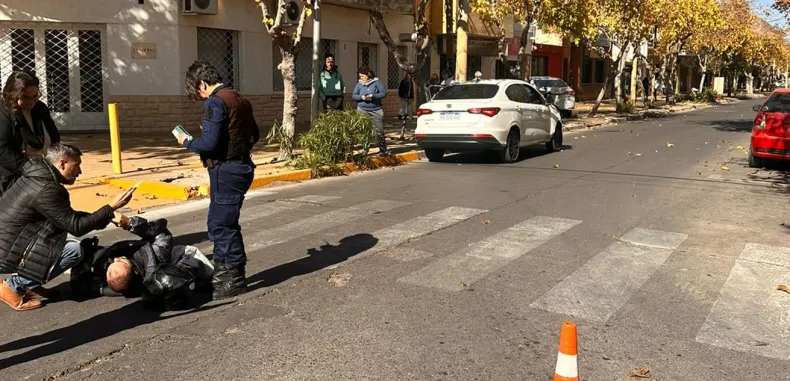 Este jueves, aproximadamente a las 14:00 horas, se produjo un siniestro vial en la intersección de las calles Mitre y Santiago del Estero, en el departamento de Capital. Un automóvil Fiat Cronos, que se desplazaba de norte a sur por Santiago del Estero, impactó contra una motocicleta que circulaba de oeste a este por Mitre. El motociclista resultó con presuntas lesiones y fue trasladado de inmediato al hospital.