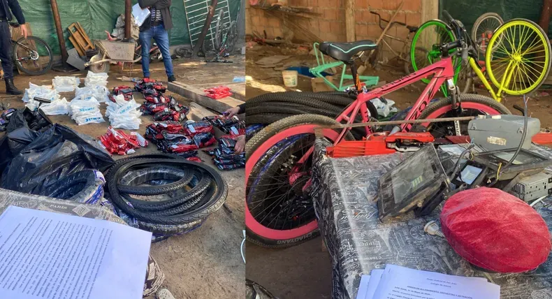Al ingresar al lugar y aprehender a los sospechosos, no fueron identificados por a Policía, encontraron, entre otras cosas, una importante cantidad de bicicletas y repuestos de dudosa procedencia, por lo que los sujetos y el secuestro fue trasladado hasta la sede policial.