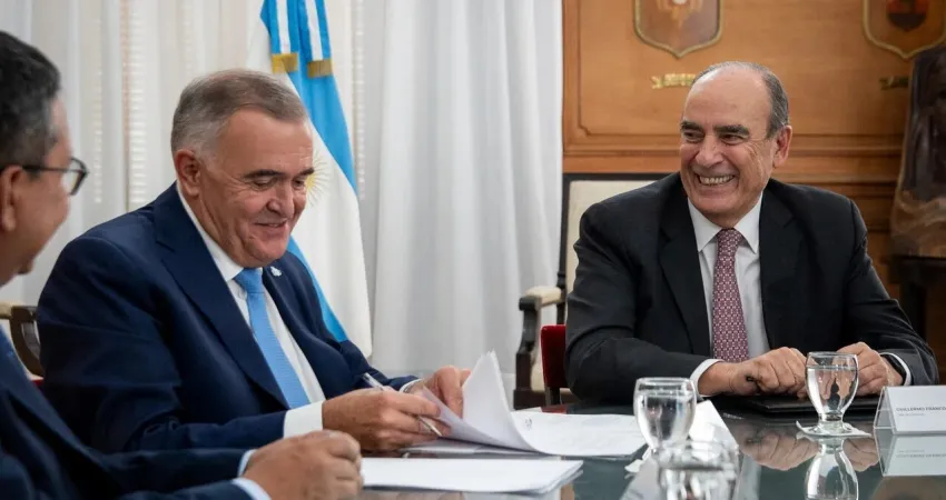 El jefe de Gabinete, Guillermo Francos, recibió hoy al gobernador de Tucumán, el peronista Osvaldo Jaldo, con quien firmó el traspaso de obras de infraestructura para que sean finalizadas por la provincia, en el marco de las negociaciones para aprobar la Ley de Bases en el Senado.