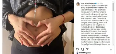 Pagano señaló además que "como es de público conocimiento, hace mucho congelé óvulos persiguiendo este sueño que hoy por fin ya es una realidad. Claro que debo seguir cuidándome porque este bebito depende 100 por ciento de mí".