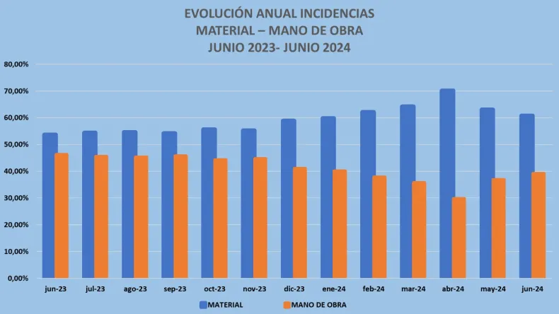 Los datos relevados en San Juan muestra un incremento del 0,63% en el costo de los materiales, y un 11% en la mano de obra. La incidencia en los costos muestra un 60,77% para los materiales y un 39,235 para la mano de obra.