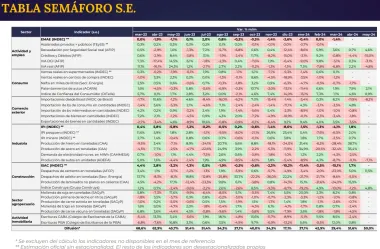 El gráfico que acompaña sus declaraciones muestra 10 indicadores analizados en mayo de este año, pertenecientes a diversos sectores, de los cuales la mitad exacta son positivos y la otra, negativos.