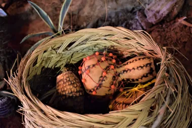 A su vez, el artesanado casero de la cestería le proveyó de recipientes, vajilla y hasta de balsas impermeables de juncos o totora, "que no dejaban escapar ni una sola gota de agua entre sus fibras" (como nos cuentan Alonso de Ovalle y Juan Pablo Echagüe); además de la alfarería, la pintura y el grabado, de las que son infaltables testigos las piedras preciosas, amuletos, adornos personales, monolitos, petroglifos y enterratorios.