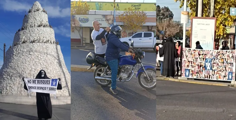 "Hoy, 10 de junio, Día de la Seguridad Vial, salimos a la calle a concientizar sobre la importancia de respetar las reglas de tránsito", publicaron desde la asociación en sus redes sociales. La campaña incluyó una intervención urbana impactante: miembros de la asociación se disfrazaron de la Muerte, llevando un cartel que rezaba: "No me busques, conduce despacio y sobrio" . Este mensaje, claro y contundente, busca llegar especialmente a los jóvenes y prevenir accidentes durante las celebraciones y el retorno a casa. La campaña la realizaron el cruce de España y República del Líbano en Rawson.