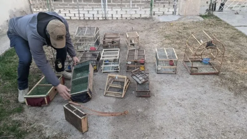 En ese domicilio se logró secuestrar seis aves de la especie benteveo y cuatro aves de la especie cardenal, 14 jaulas y entre ellas, también, tramperos y jaulas de transporte, lo que significa una infracción al artículo 206 de la ley 941-R.