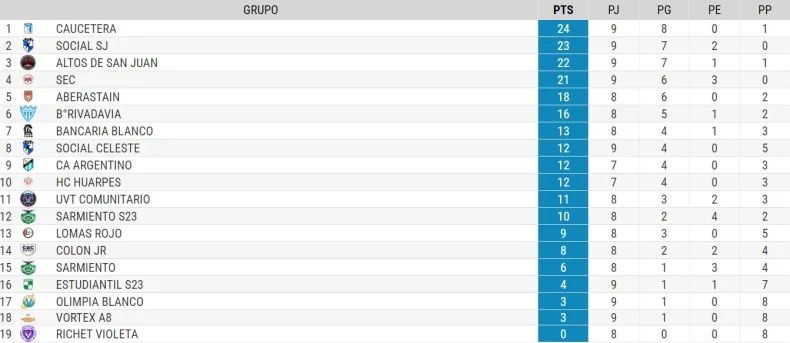 La Unión Deportiva Caucetera perdió luego de 8 partidos invictos. Fue contra Social San Juan de visitante 8 a 2. De igual modo sigue arriba, pero con un solo punto de diferencia.